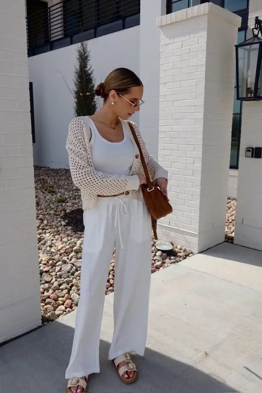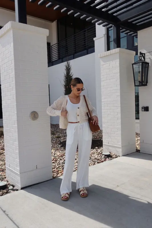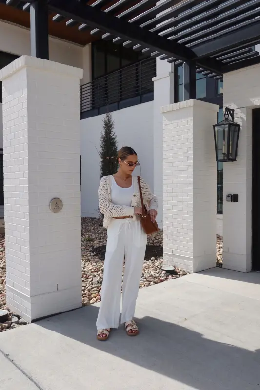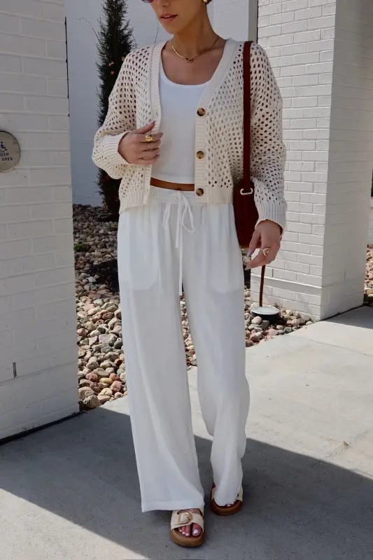 The Alysa Crochet Cardigan is the perfect blend of lightweight comfort and timeless style. This full-length knit cardigan features a delicate crochet design with a flattering V-neckline and elegant brown marble-detailed buttons for a sophisticated touch. Designed for effortless layering, it’s the ultimate spring staple, pairing beautifully with everything from casual denim to flowy dresses. Whether you're dressing up or keeping it relaxed, the Alysa Cardigan is a must-have wardrobe essential for the season!