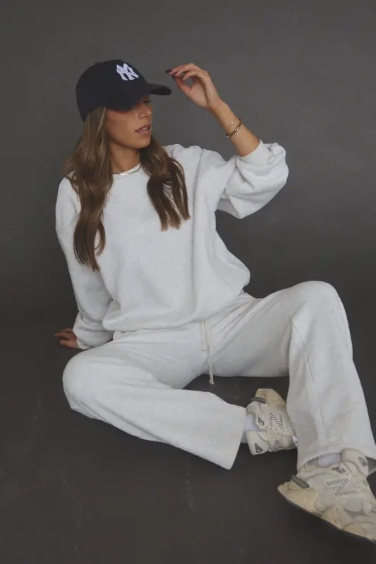 Our Lennox Crew Neck Sweatshirt In Heather White is the perfect pullover sweatshirt. This sweatshirt features a soft sage color, the inside of this comfy item is a fleece lining, there is ribbing detail around the neckline, wrists, and hemline. This crew neck is an oversized fit. This sweatshirt is the perfect color to match with all your essentials!