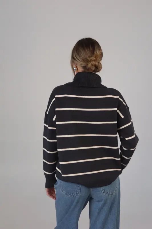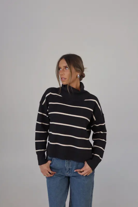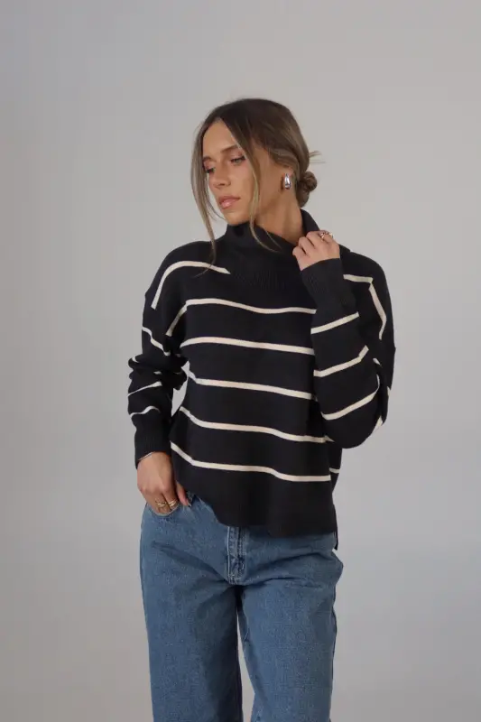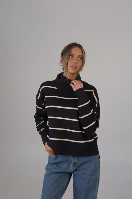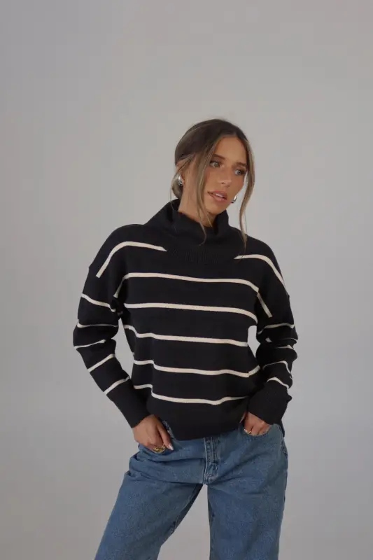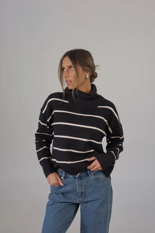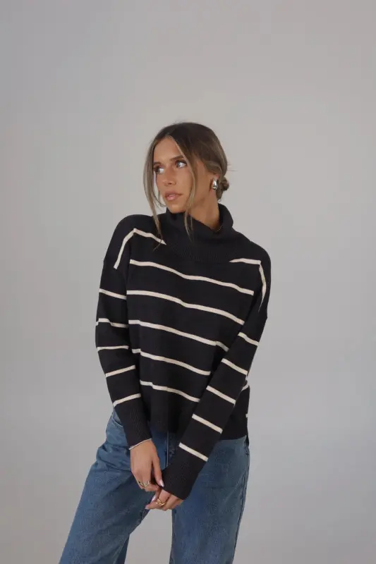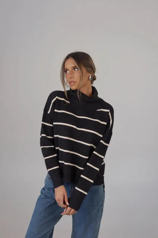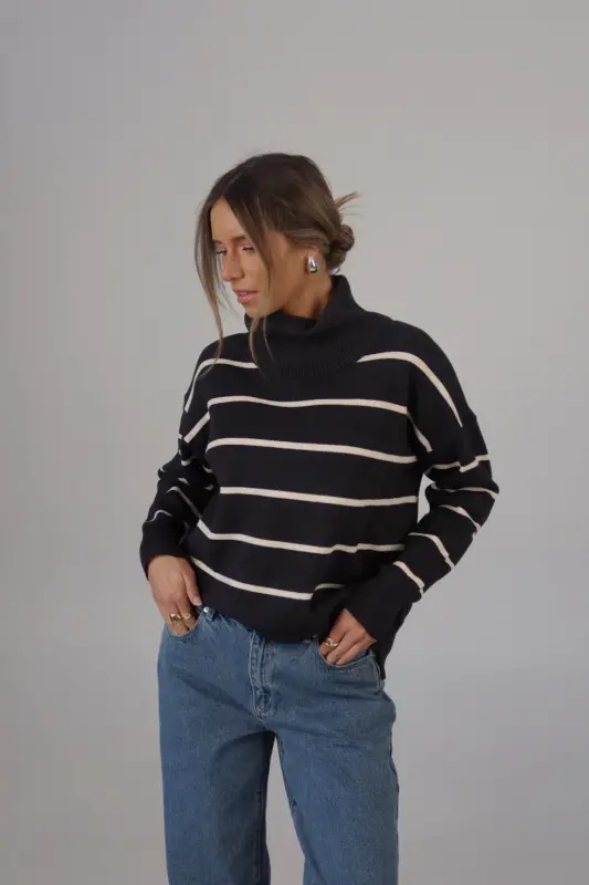 Elevate your winter wardrobe with the Striped Cozy Crop Turtleneck, a classic piece reimagined for a modern, relaxed look. Featuring a boxy silhouette and cropped length, this sweater is the perfect companion to winter white cords or your favorite pair of jeans. Made from a soft and breathable cotton blend, it offers just the right amount of stretch for comfort without sacrificing style. Whether you're cozying up at home or out for a casual day, this turtleneck promises warmth, style, and effortless ease.